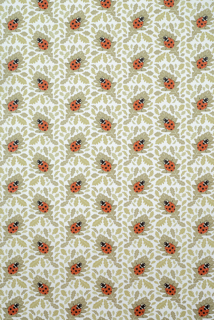 The leaves are abundant, dense and green. Bright and beautiful, a ladybird sits quietly in the foliage.