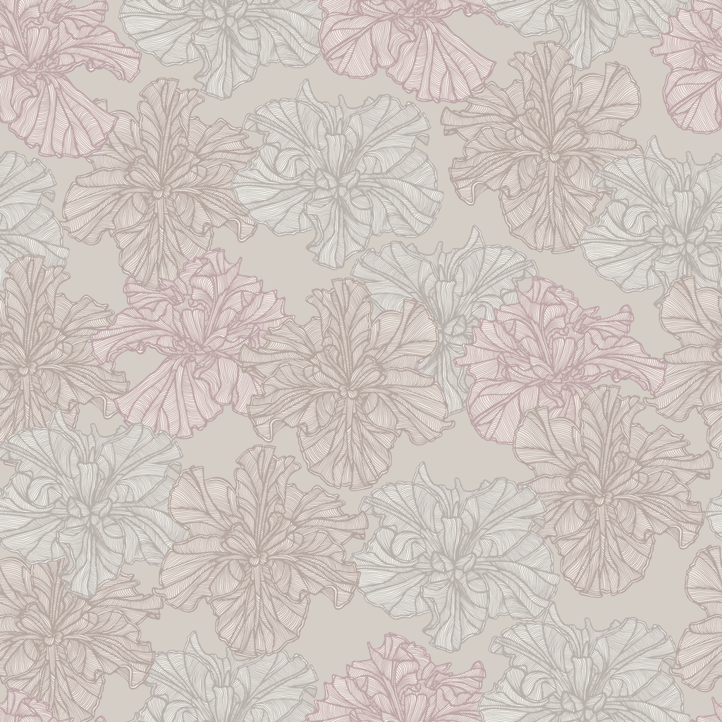 This vibrant wallpaper designed by Patricia Braune outlines lightly ruffled water iris from the swamps of Louisiana.