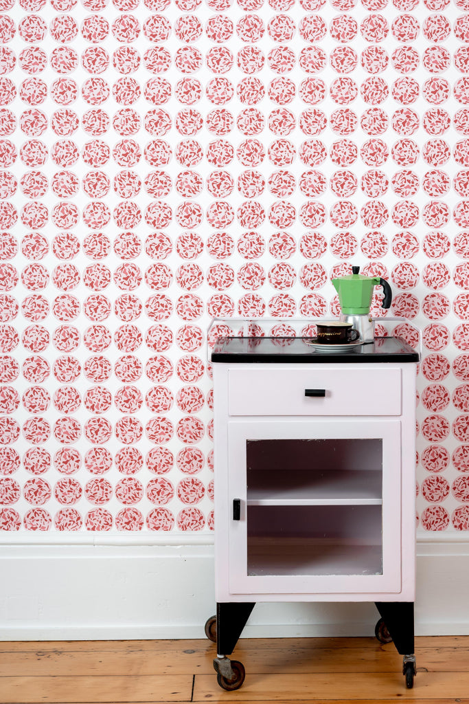 ‘Charcuterie’ is a graphic uniform design featuring slices of sausage, reminiscent of terrazzo.
