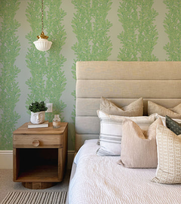 This gorgeous botanical wallpaper was designed by Patricia Braune. It depicts the elegant Illicium shrubs in a sophisticated hedge-like design.