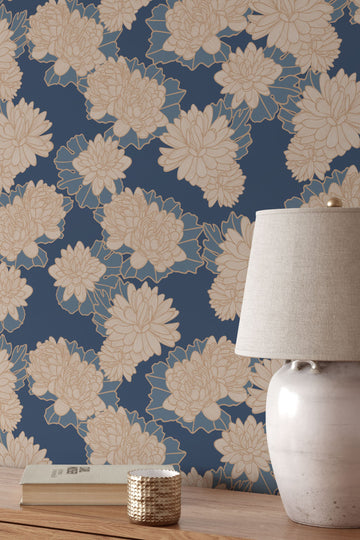 This statement floral wallpaper was designed by Patricia Braune, as an interpretation of this double-flowered bloom with its scalloped leaves found in the shaded woodlands.